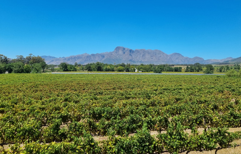Vrede en Lust (translating from Afrikaans to Peace and Passion) was our first stop on the tram. And we were very impressed with the charming little vineyard – till we rounded the corner, and found ourselves a good deal more impressed with the far larger vineyard!