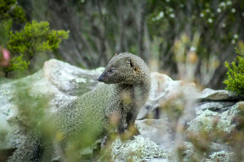 This part of the Garden really is alive with animals. The sandstone rocks provide homes for rock agama and crag lizards, while angulate tortoises search for food deep in the flowerbed. Striped mice race between the flowerbeds and Cape Mongooses occasionally come out into the open. If you are very lucky, you may even spot a Cape genet or even a caracal searching for prey in the early morning or evening.
