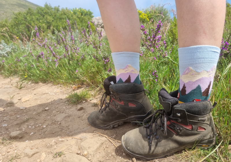 Wearing my featsockco. socks, and some very dirty hiking boots!