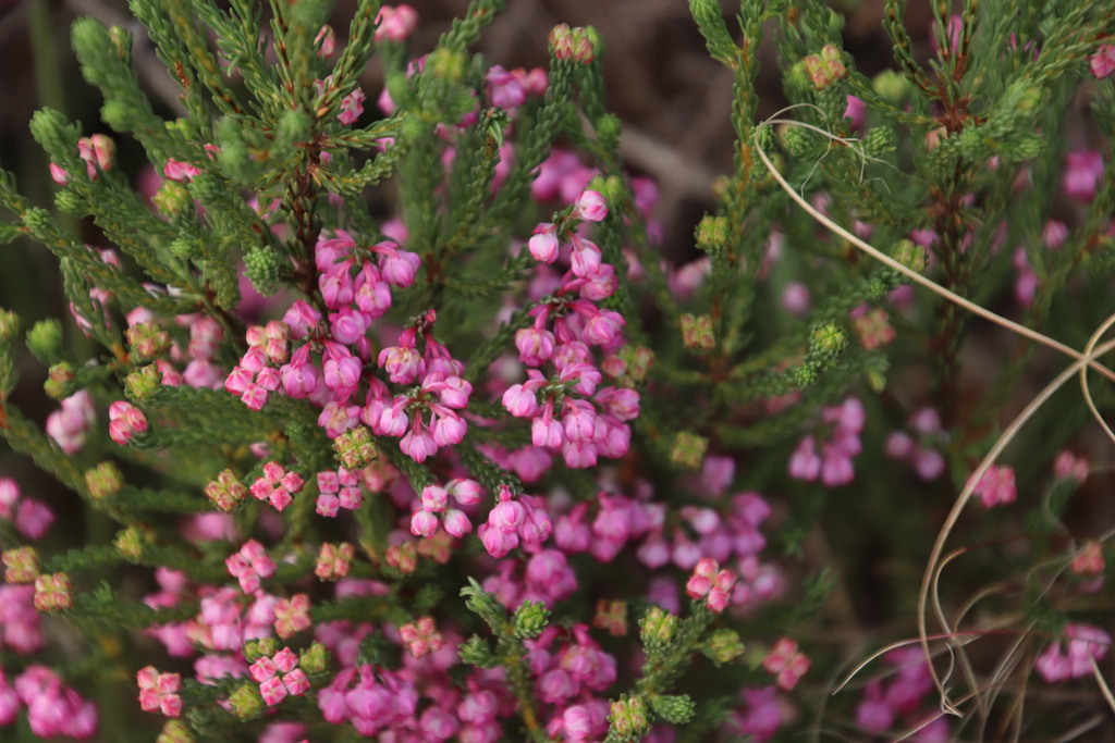 With an astounding 104 species of Erica on the Cape Peninsula alone, identifying them can get a bit overwhelming at times. Be that as it may, the general robust nature of the woody Berry Heath shrubs and their pink berry-like flowers are quite distinct in comparison to other similar Erica species.