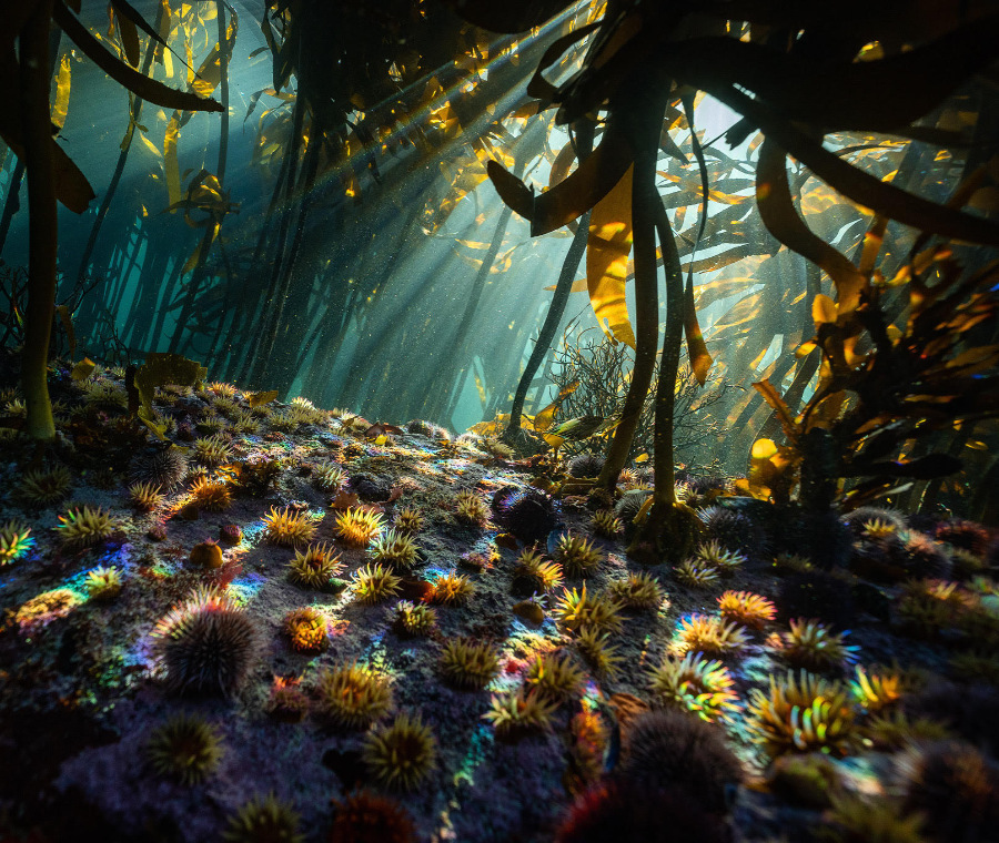 Oh my gosh. So a big thing for me is the light underwater. It’s lights and colour and creatures and the absolute quiet as well. You know, in this world that we’re living in now, it feels like the sea is one of the very few places you can go to (besides the forest) where there’s still quiet. And I think the act of just holding your breath and being under is just so relaxing. I know a lot of people wouldn’t think so. But for me, it’s just, I get like so greedy for the light. Particularly in the kelp forests. I recently went to the red sea and it was beautiful and the coral reefs were magnificent, and it was mind-blowing. But I missed the kelp. Because when you’re under the canopy of the kelp you get that contrast and the way it kind of moves and sways and you get this incredible light.