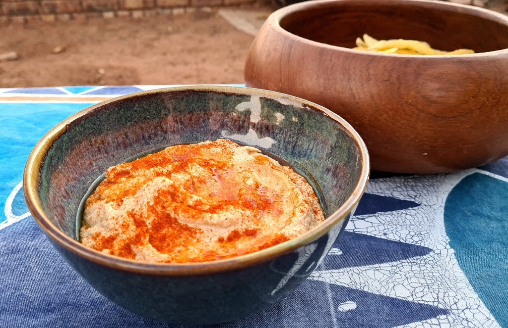 And there you have it! Your 10-minute crowd-pleaser. This hummus dish goes terrifically with bread and pita, and we always start our braais (South African barbeques) with hummus and chips. We tend to eat so much of it that we’re not really hungry for the meat anymore, but what can you do. We still fit in our roosterkoek!
